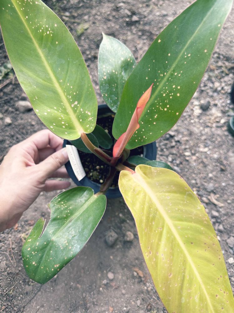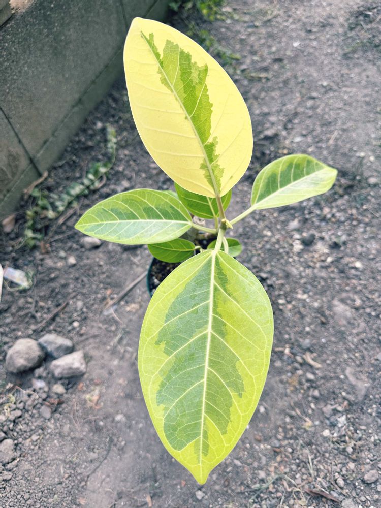 2025.8月に某サイトで購入した【アロカシア チャイ】の 突然変異?なんだろう 購入時、元々有った葉を(1枚目の葉)として、 下から新たな葉が出てきてる状態で到着しました(2枚目の葉) こちらに来て初めて出てきた葉に異変が。。 育て始めて出てきた初めての3枚目、4枚目 (途中から、斑1、斑2、、と続きます) どこまでこの謎の斑入葉が続くのか、 いや止まるのか……記録していきます