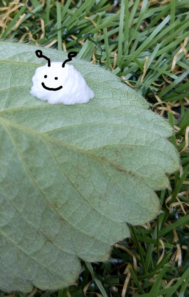 3️⃣いちごの葉っぱの裏に虫さんのなにかが…( ・᷄-・᷅ )