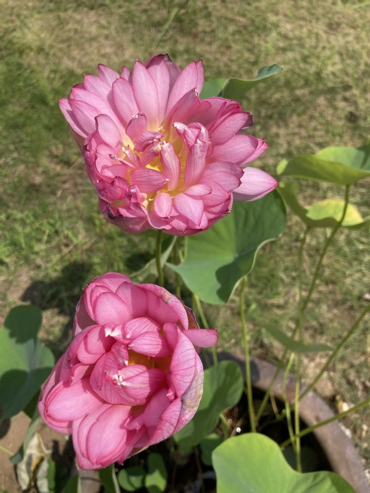 ここのところ3日くらい、ジョウロでハスの瓶に水を入れていました💪😃