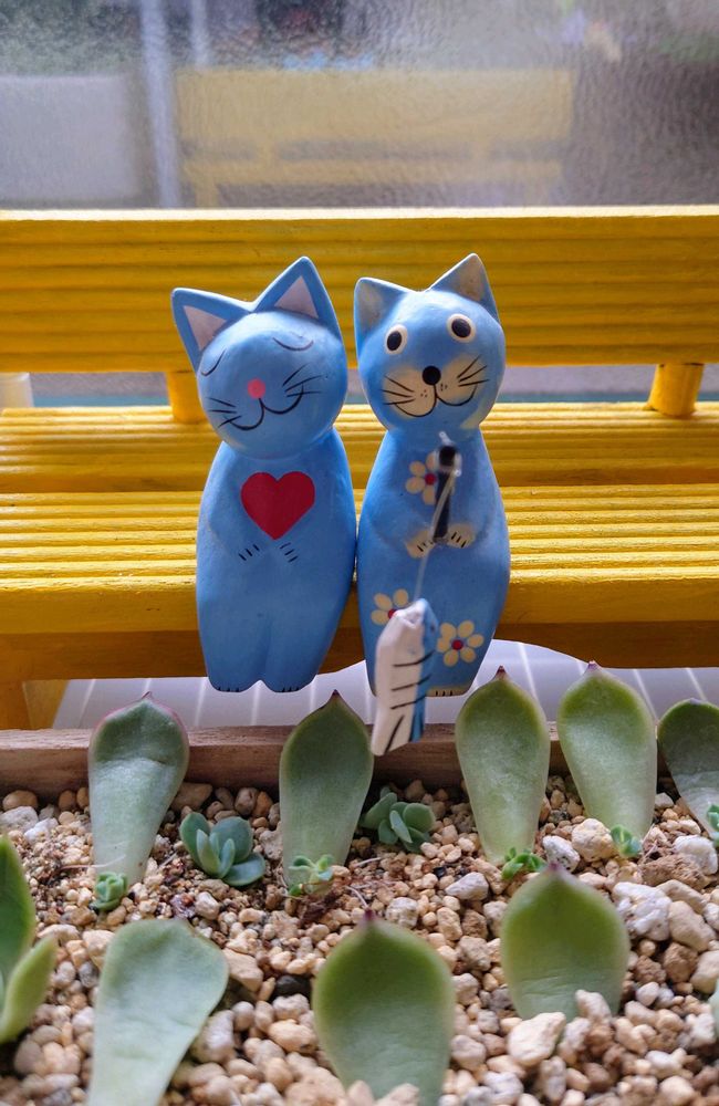 😺ほのぼのと寄り添うインドネシア雑貨の木彫りにゃんこ