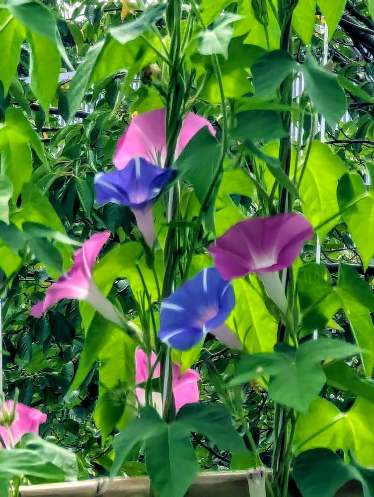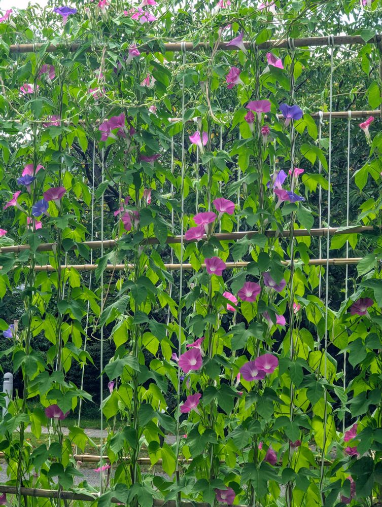 お庭の一角にアサガオの棚があり まだ9時過ぎだったので たくさんのお花が咲いていました💙💕