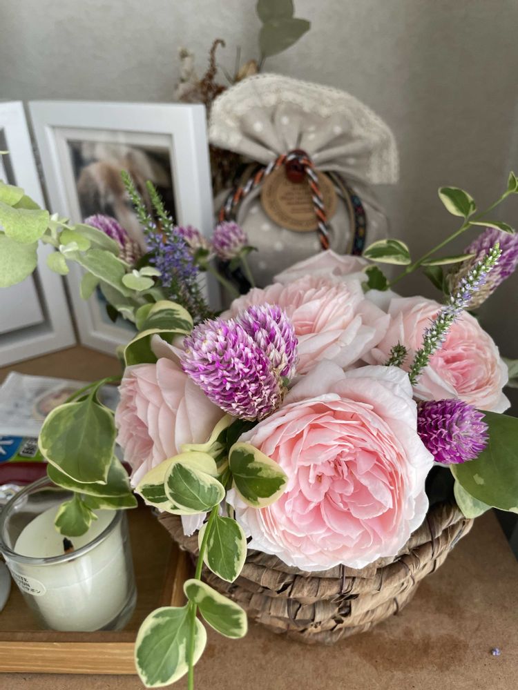 庭の花を飾ったよ