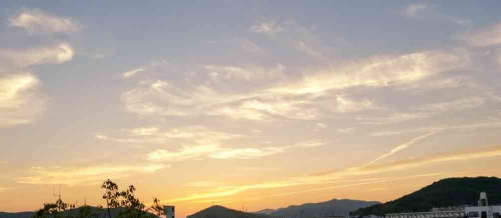 山ぎわの飛行機雲が夕焼け色に染まっていく瞬間🌅