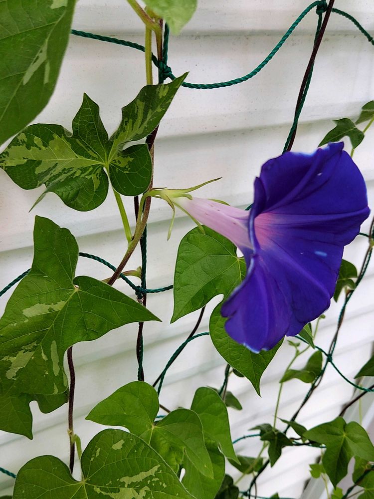 昨年育てた朝顔の種を取っていたので蒔き今年も咲いてきました 藍色💜が最初