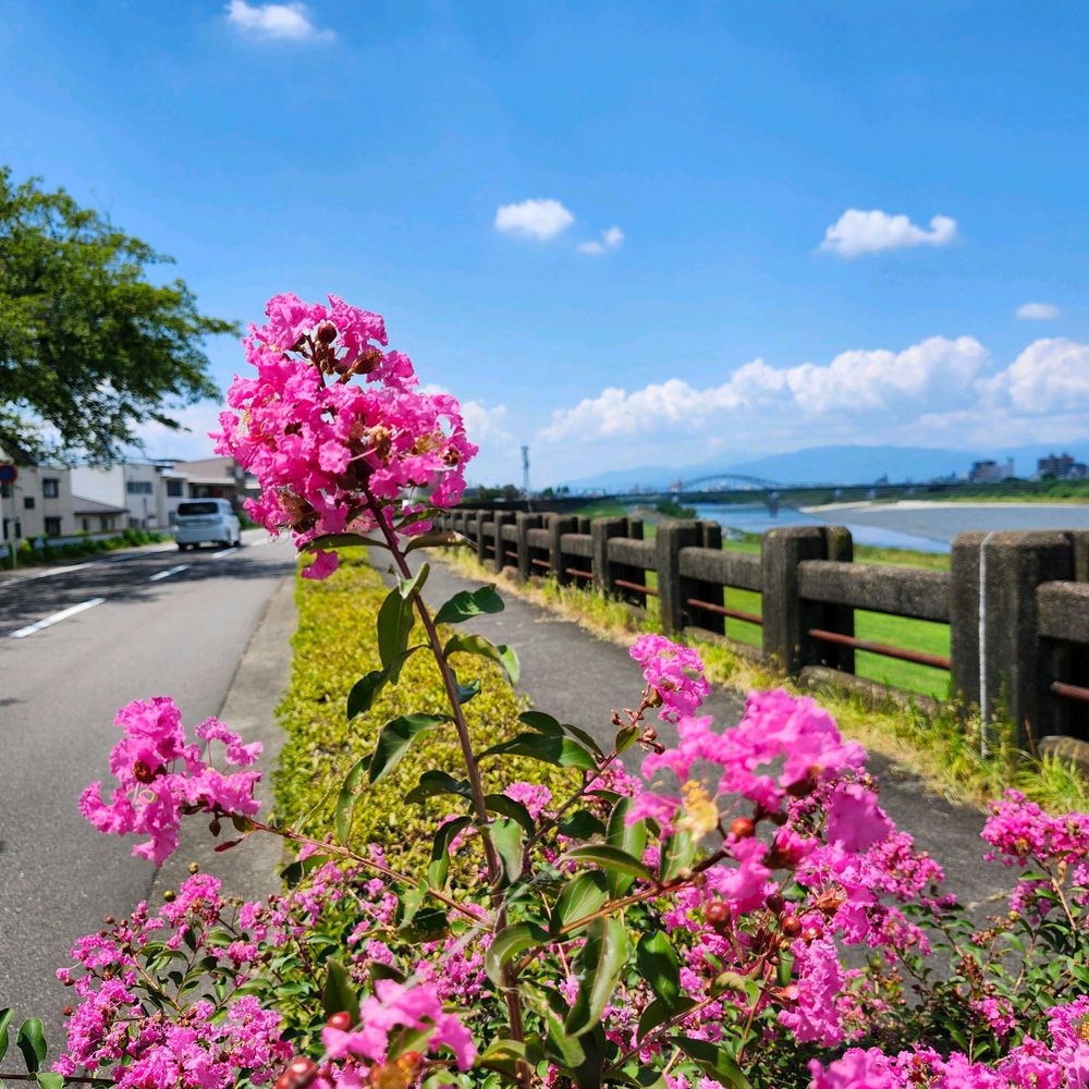 帰り道、堤防沿いにある百日紅がピンクピンクしてました。