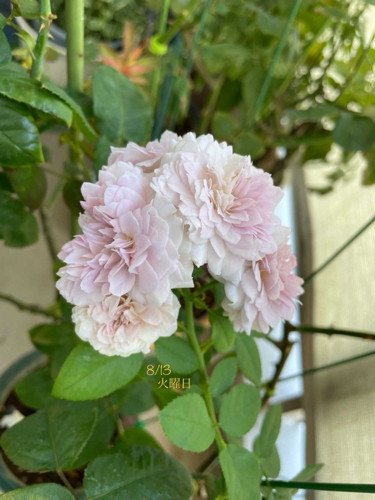 8/14 🥰うっふっふ。5つの房咲き蕾、綺麗に咲きました💕レヴリ「るわしあ」(鉢の名前)🤗1枚目のpicはわかりづらいけど5輪揃ってます。至福の毎日でした。