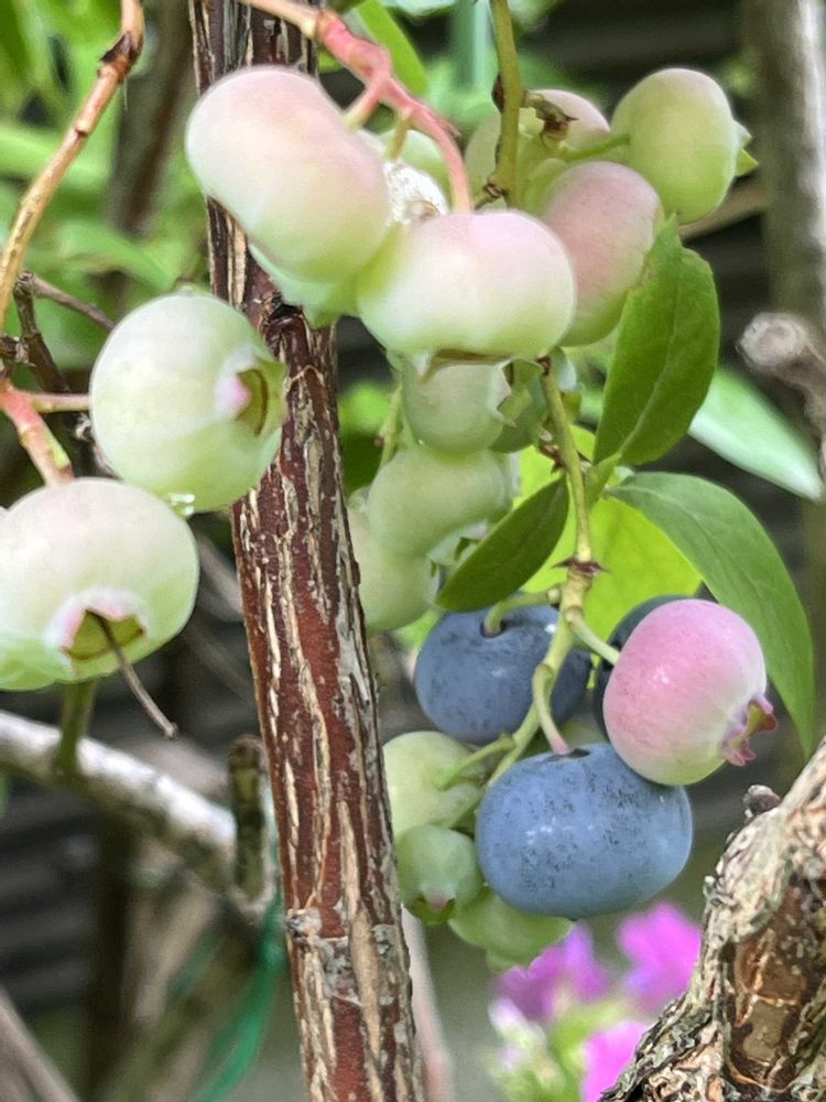 ブルーベリーは2本あっても毎年少ししか採れないの😫庭に出た時摘んで食べてます🫐
