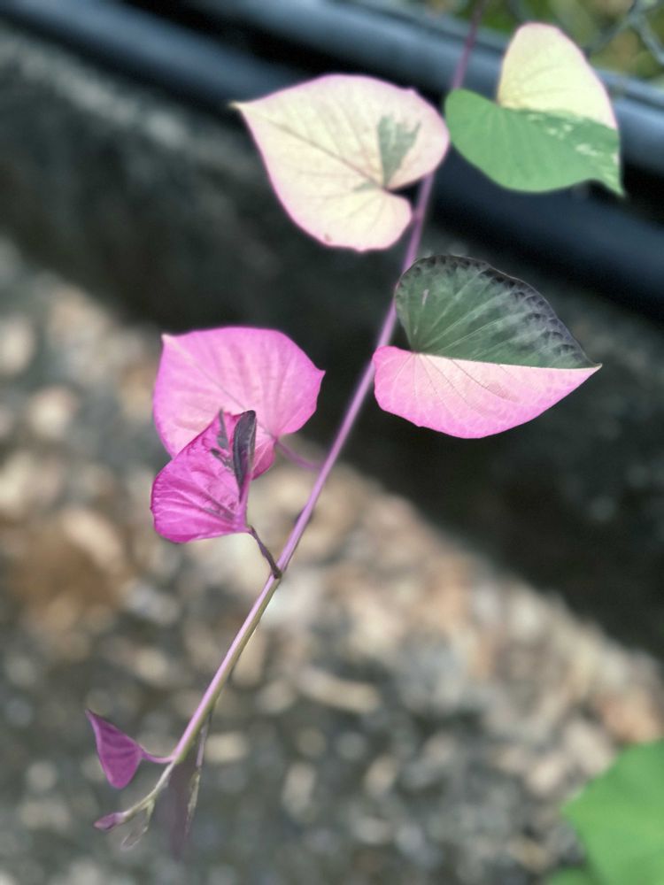 サツマイモの斑入りですか!?珍しいですね!そしてピンクの斑が綺麗。私は普通斑入りで売られない植物の斑入りが大好きで、簡単に手に入らないので、すごい羨ましいです👍