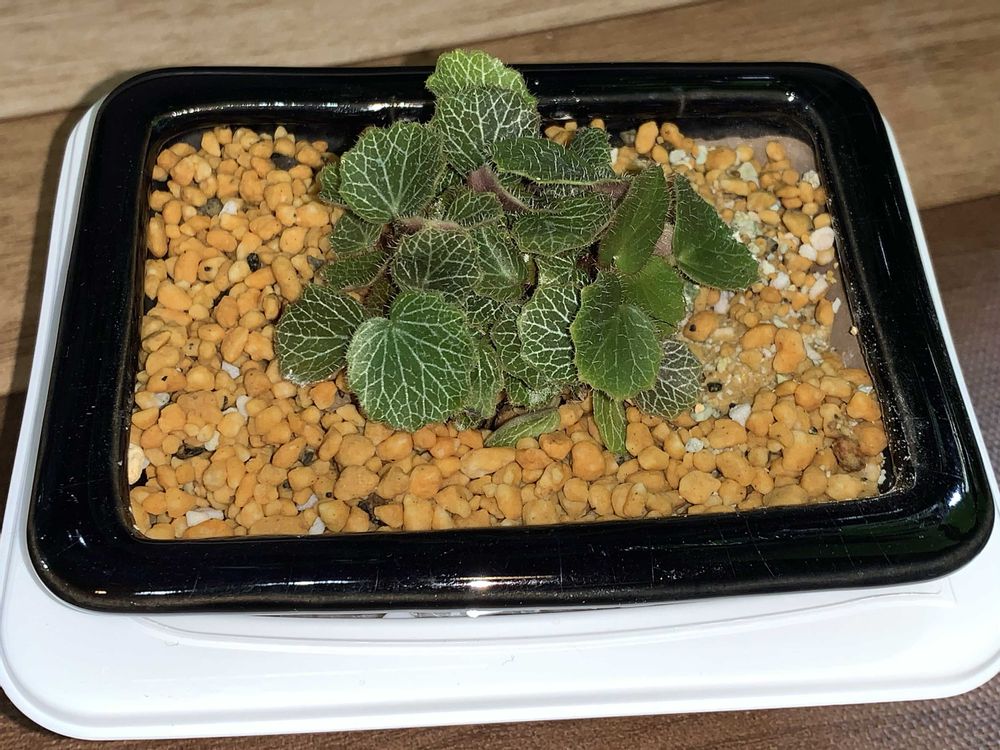 昔100均で売っていた盆栽鉢に硬質鹿沼土主体の土で植えました。