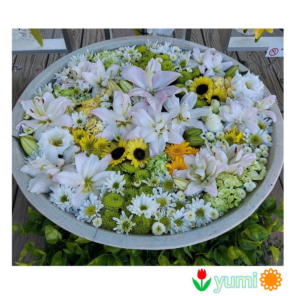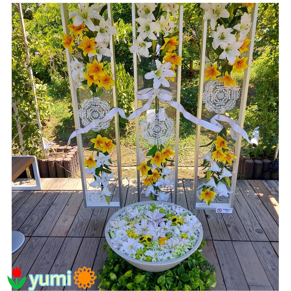 清楚な百合の花手水とウォールスタンドの百合の華やかさが何とも言えません🥰素敵ですね😍