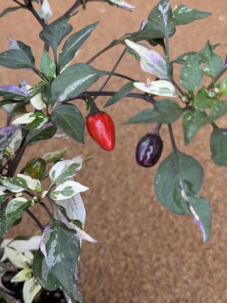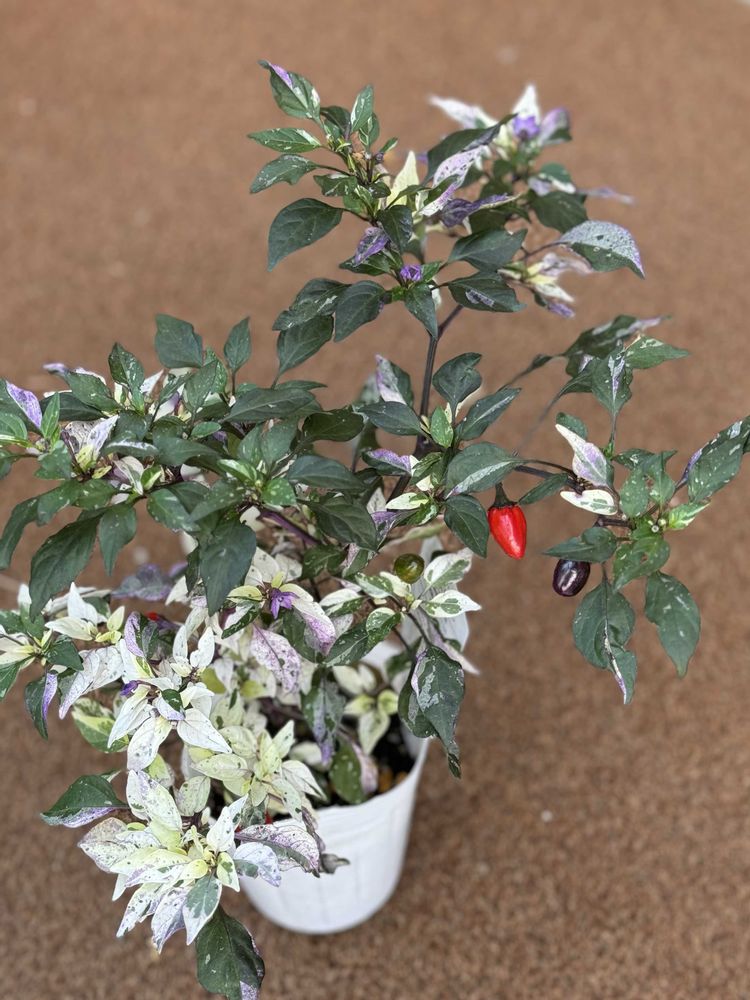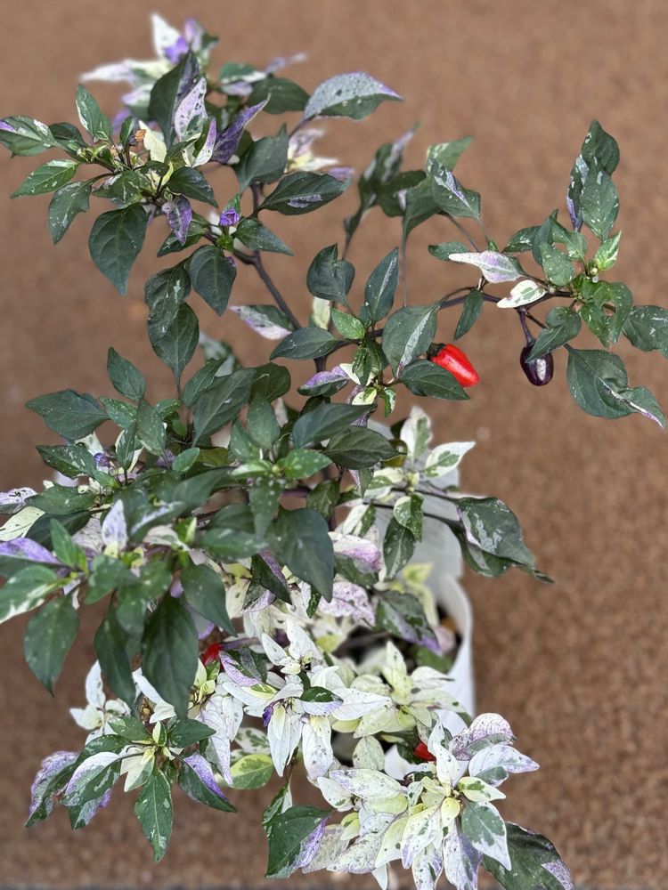 こんばんは🌛斑入りの唐辛子とっても涼し気で綺麗ですね🥰💚🤍💜