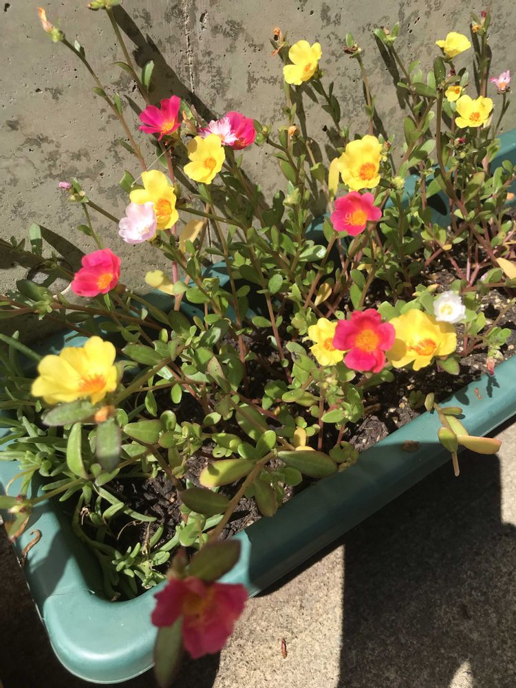 挿木したポーチュウラカが太陽で、綺麗に咲いてます💕