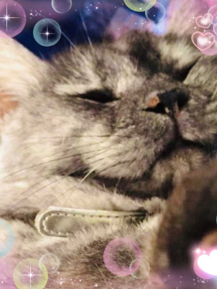 お盆も終わりましたね。姿は見えないですが、きっとワンコ達と一緒に来てくれたと思います。保護時は猫に触った事のない私は怖々でした。本当に小さくて頭から耳辺りが皮膚炎でした。その頃の私はワンコにうつらないようにと病院に連れて行きました。でも日に日に可愛くなりワンと一緒に育てました。忘れられない思い出は(当時昼は外に出していましたので)台風が過ぎ去り外へ出たいと鳴いた為出したところ、風で飛んできたビニールの紐を口にくわえ、嬉しそうに走り回った姿です。なんでもない光景ですが、よく思い出します。思い出すと涙が出ます。