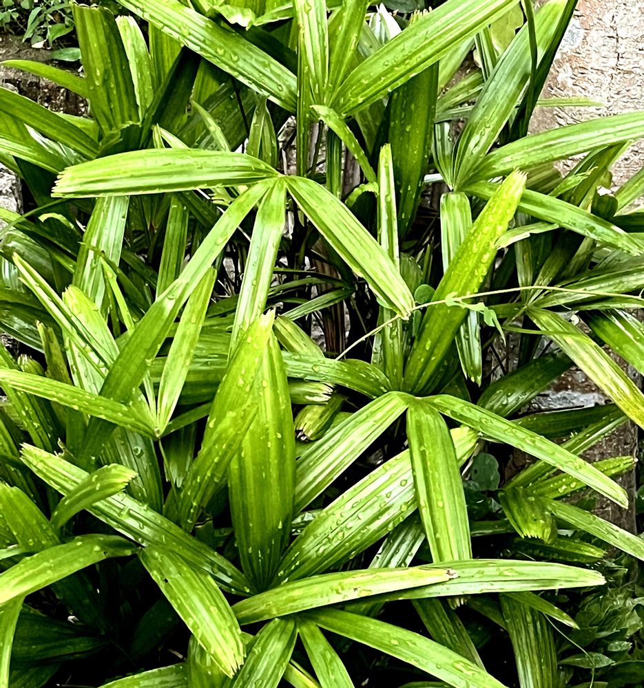 シンボルツリーの下で、鉢植えのカンノンチクが、今年は、元気です😀