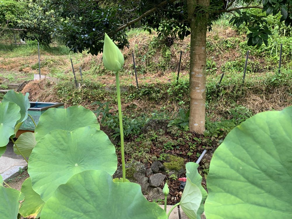 茶碗蓮🪷の小舞妃5番花3日目😀左後ろの火鉢の大賀蓮は種から2年目😀花芽が2つ上がり、膨らんできてます😀