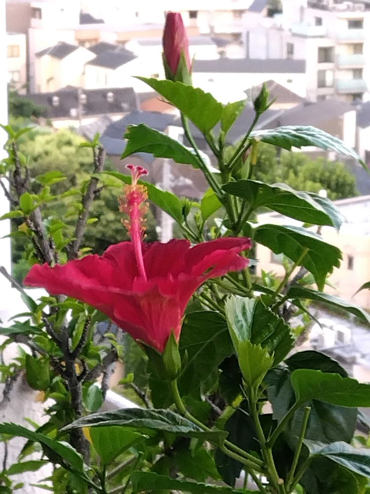 ハイビスカス,昨日の夕焼け,赤い花の投稿画像