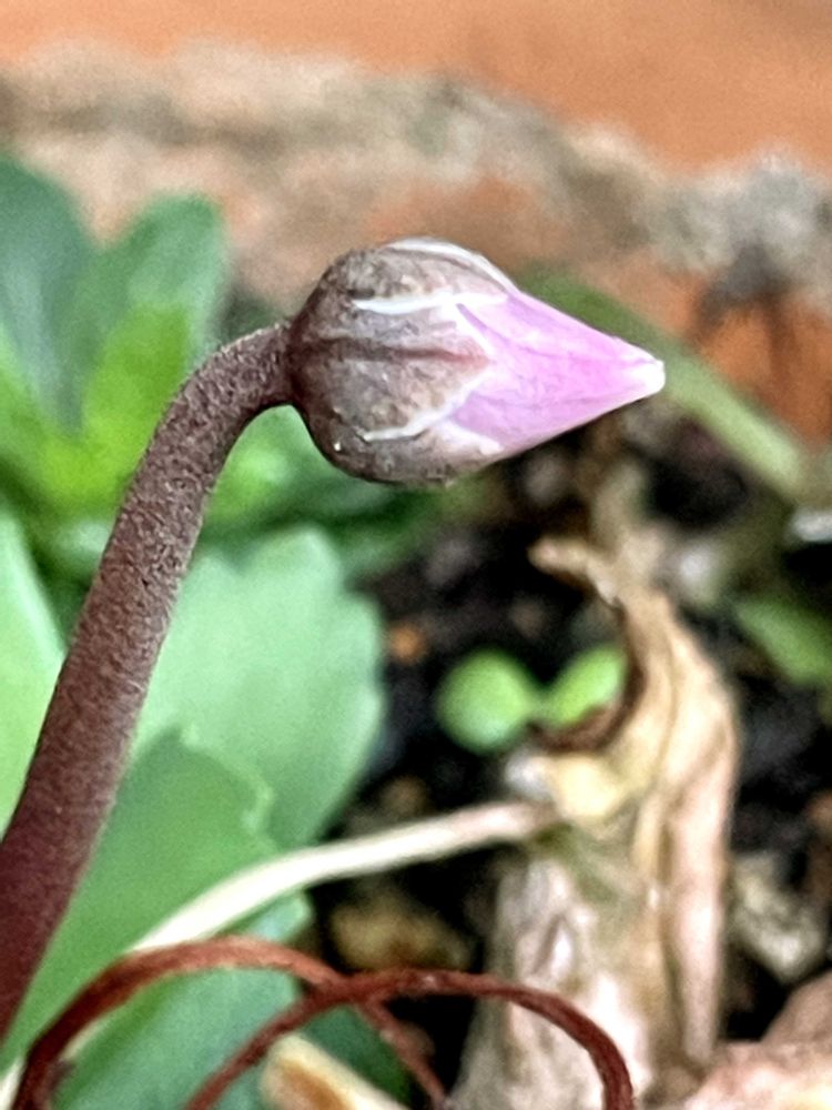 うちでは1シーズンで終わるガーデンシクラメン💓アヒルさんのクチバシのような蕾ステキ😍
