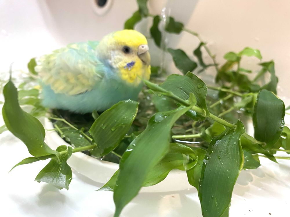 水浴びに🌿が入ると急にテンションがあがりますよね。我が家は豆苗にダイブします╰(*´︶`*)╯♡