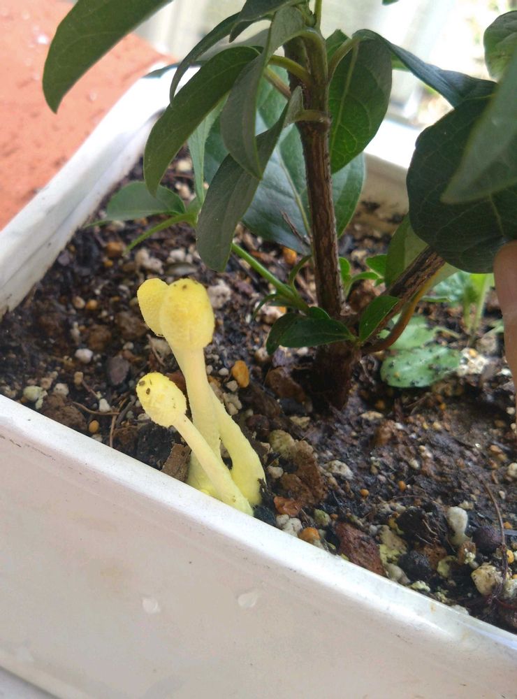 台風で避難した鉢を庭に戻していたら、きのこが生えてました😲