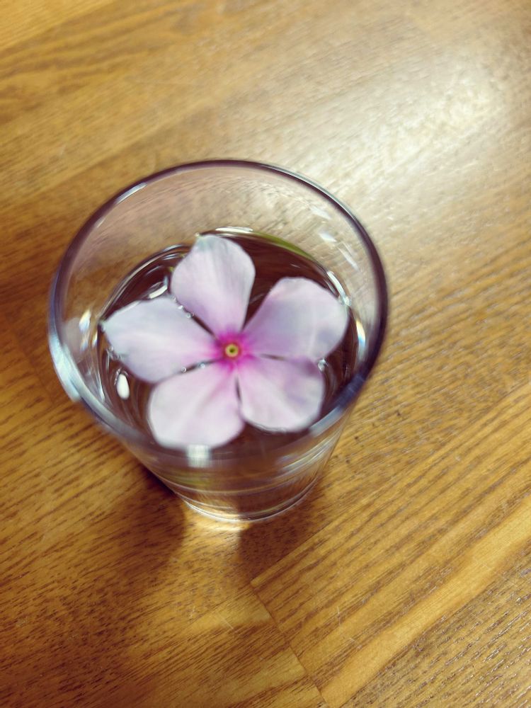 一輪のニチニチソウが散っていたので、小さなグラスに飾りました✳️