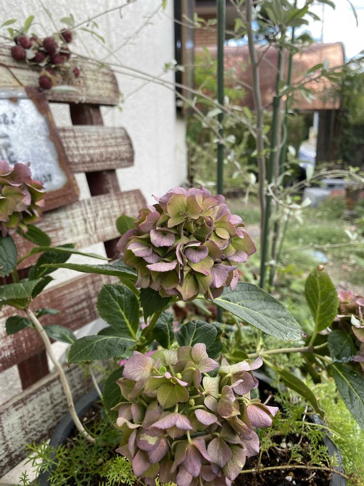 秋色紫陽花、素敵なアンティークカラーだねー·͜·ᰔᩚ