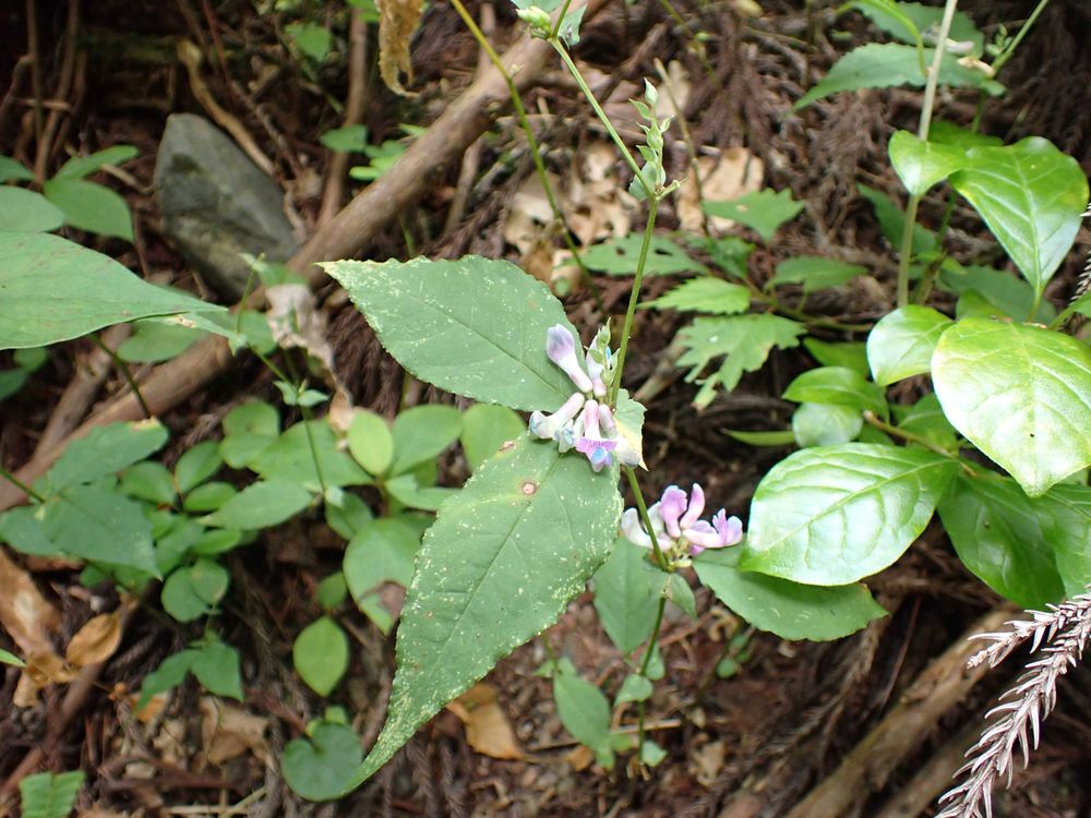 葉柄は短く、葉は波打ったかんじ。葉は卵形で先は長く鋭くとがる。上部の葉腋に花柄が短い総状花序を出す。蝶形花をつける。