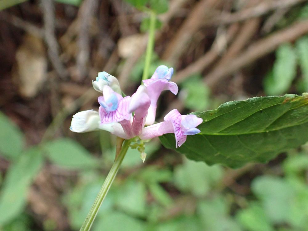 見つけた時、フタバハギ(ナンテンハギ)と、似ていると思いましたが、なんか違うと思いながら撮りました。調べていくうちに、ミヤマタニワタシかなと思いました。花柄が短く1枚の小さな苞があることで、フタバハギと見分けるそうです。フタバハギは、花柄が長く苞がないそうです。