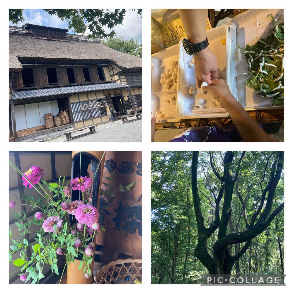 かやぶき民家には本物のお蚕さんがいてびっくり。大人も楽しい体験ができました〜😆