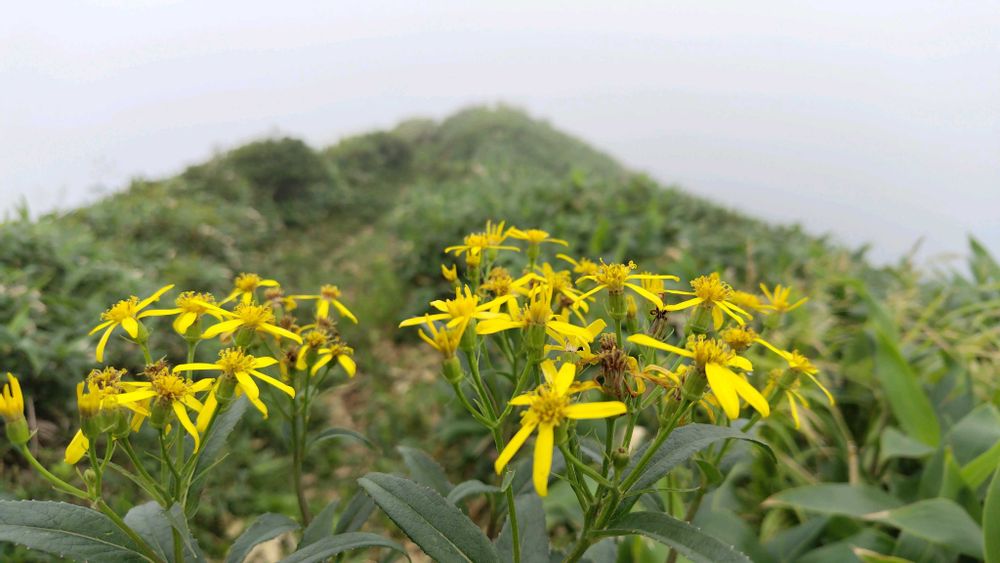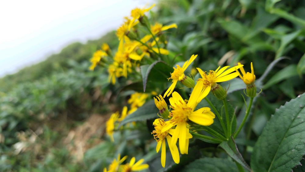 キオン。似ているハンゴンソウは葉っぱが3本割れ、キオンはスラっ一本葉っぱ。