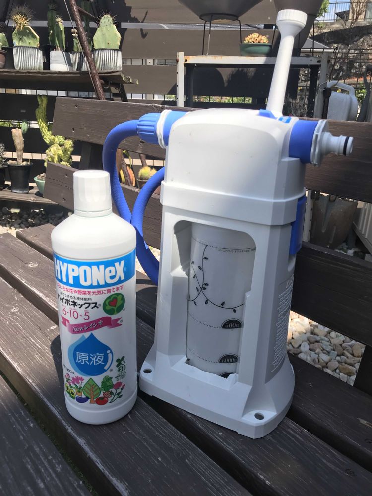 昨年末あたりから使用しているタカギxハイポネックスさんの液肥希釈キット。個人的に最高です。(回し者ではないです)