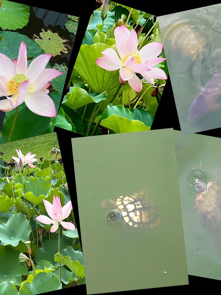 4枚目 公園の池で⛲️大きな鯉と亀🐢鯉に近寄る亀🐢スッポン🐢らしき亀🐢クサガメ🐢イシガメ??