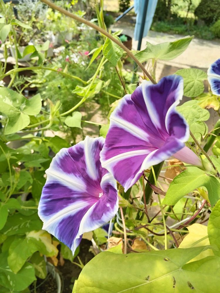 西洋朝顔のヘブンリーブルーが、昨年の種があまり採れませんでした。ようやく咲き始めました。🤗