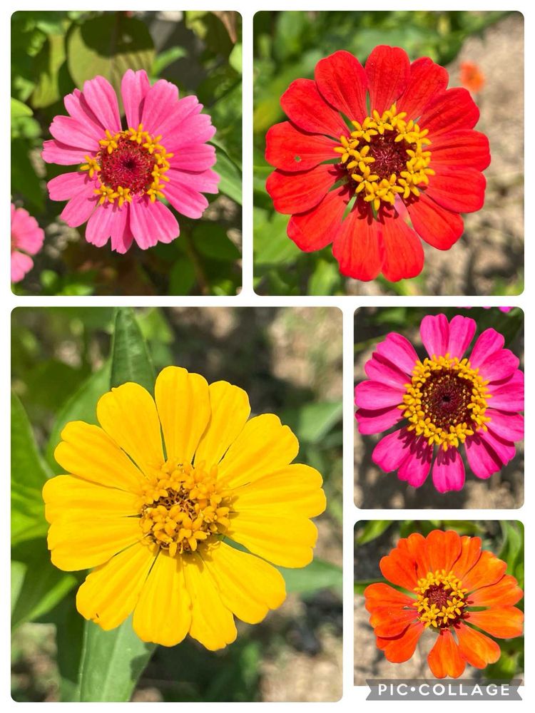 から沢山の百日草が咲いています^_^🎶💕どの花も可愛いですね🥰🍀ピンクが好きだけど最近は元気になれる黄色が好きになり少し大きめにしました🌼