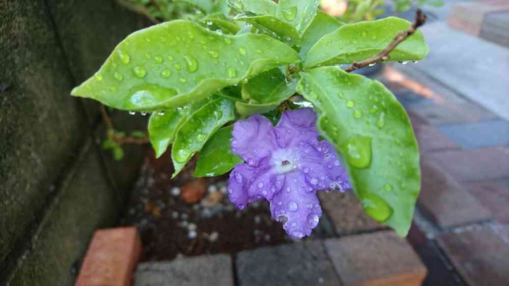この暑さの中、ニオイバンマツリが咲いていました。頑張るねー。すごいねー。