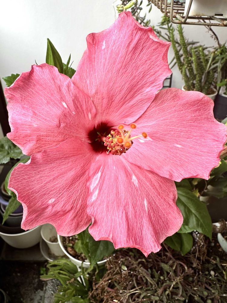 今日のハイビスカスピンク🌺なんだか所々、小さな白斑がある😅