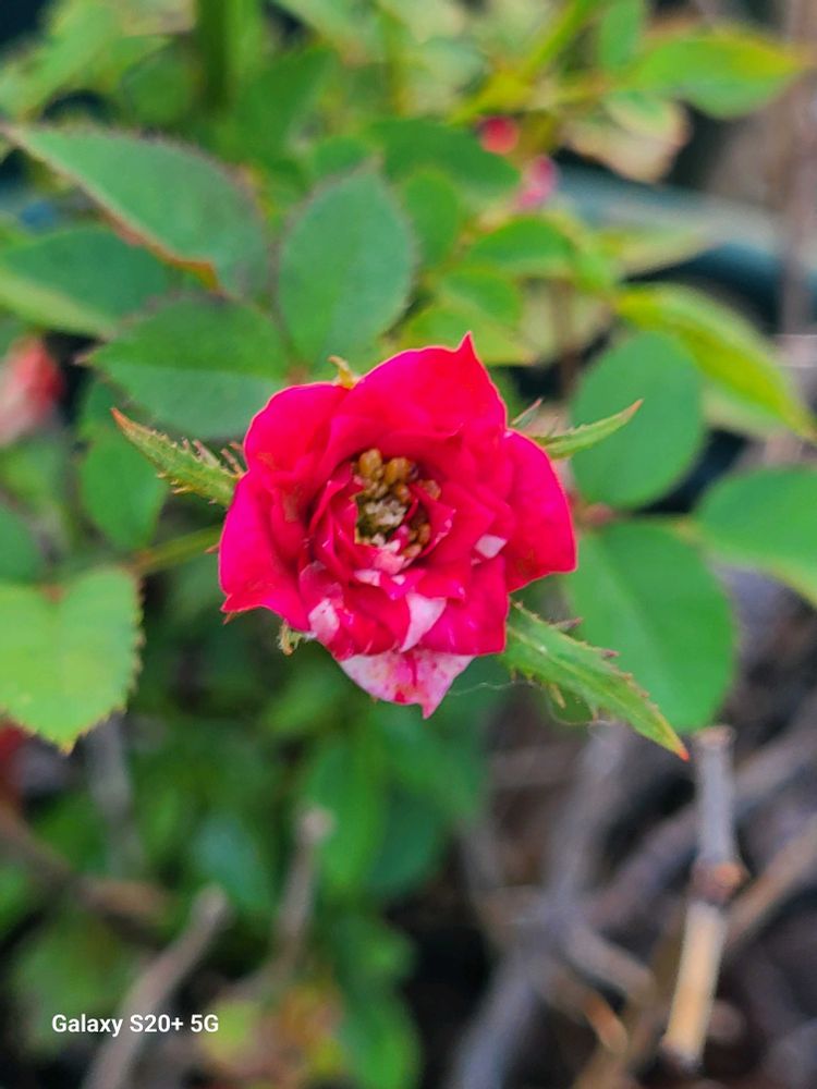 そんな暑い中で、ミニ薔薇のゼブラが咲いています。