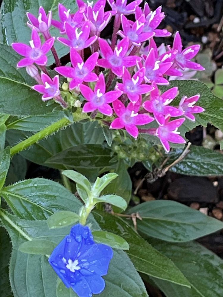 花壇で咲く、ペンタスとアメリンブルー🩵