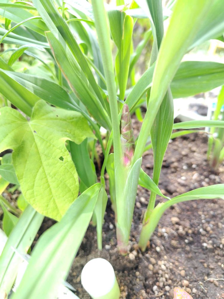 今日、クルクマを全部プランターに植え替えました。もっとどんどん花芽が上がってこないかなぁ。