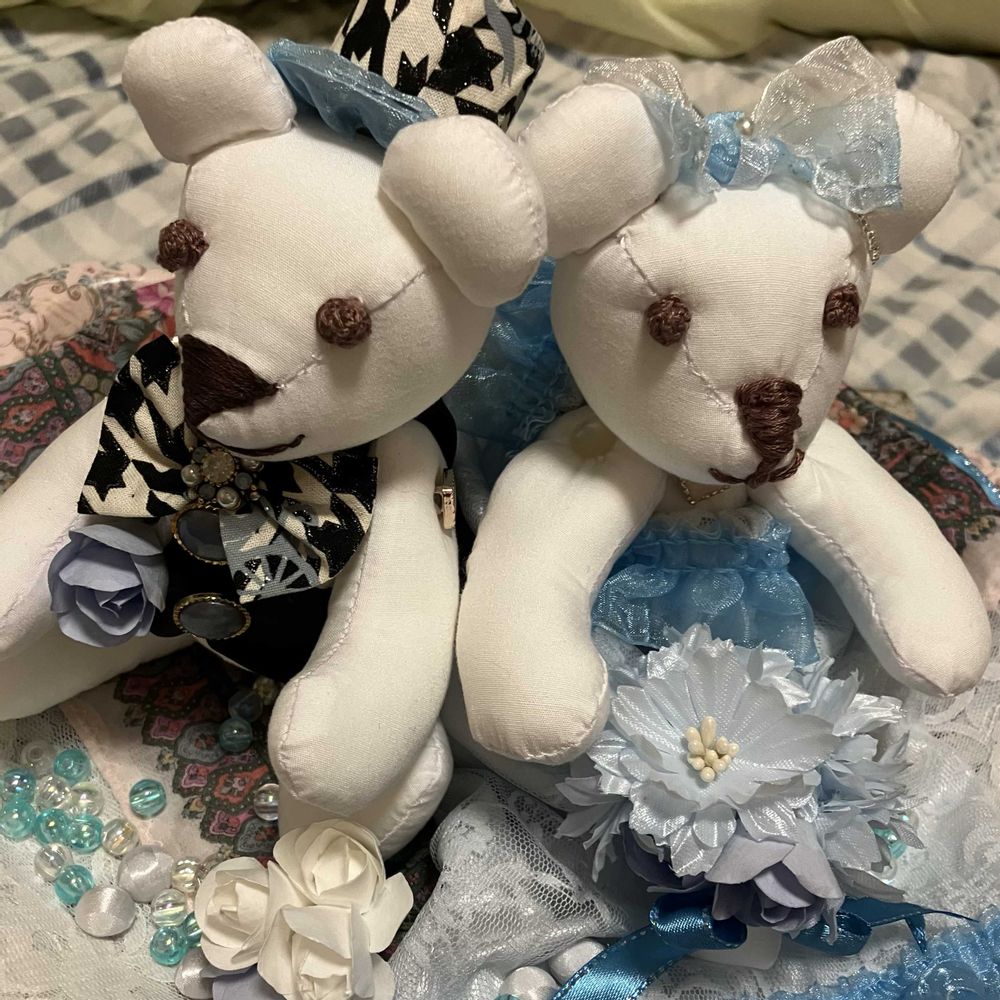 11月に結婚式挙げる息子夫婦のためにウエディングベアーを作りました( ´ࠔ`* )〜♡