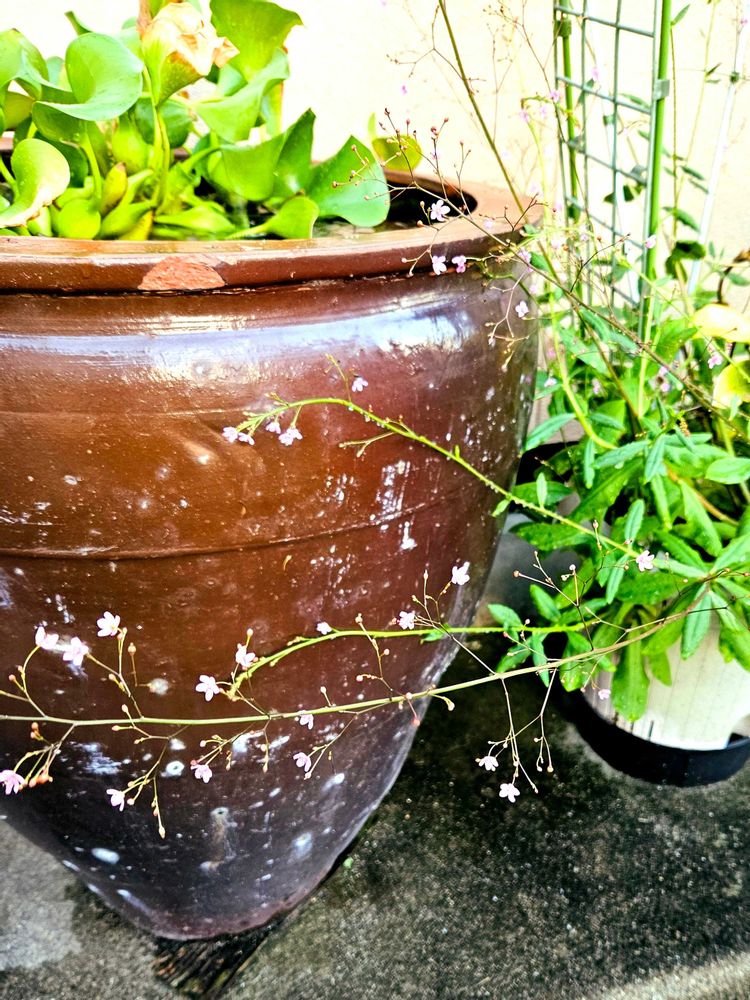 3️⃣ホテイアオイの咲いている甁にハゼラン(三時草)が寄り添って✌️😅