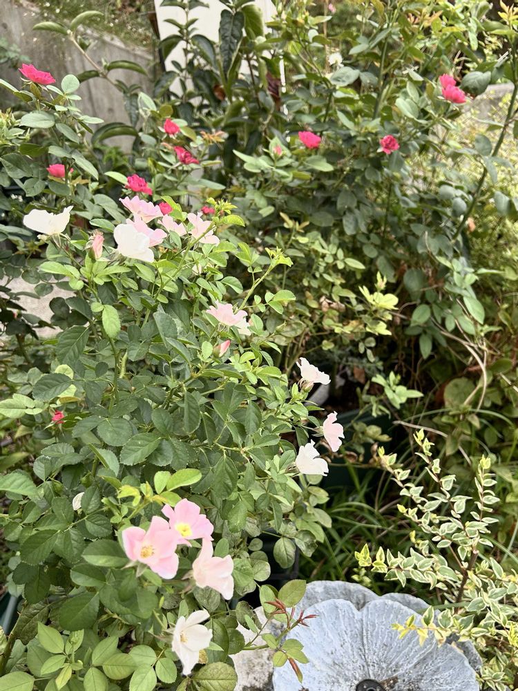 我が家では、花だけでなく、新芽含め葉が全体に白っぽいバラもあって、肥料不足?暑さでバテてる?と心配していますが、毎日の水やりでお手入れが精一杯で肥料もあげずに様子見です😅