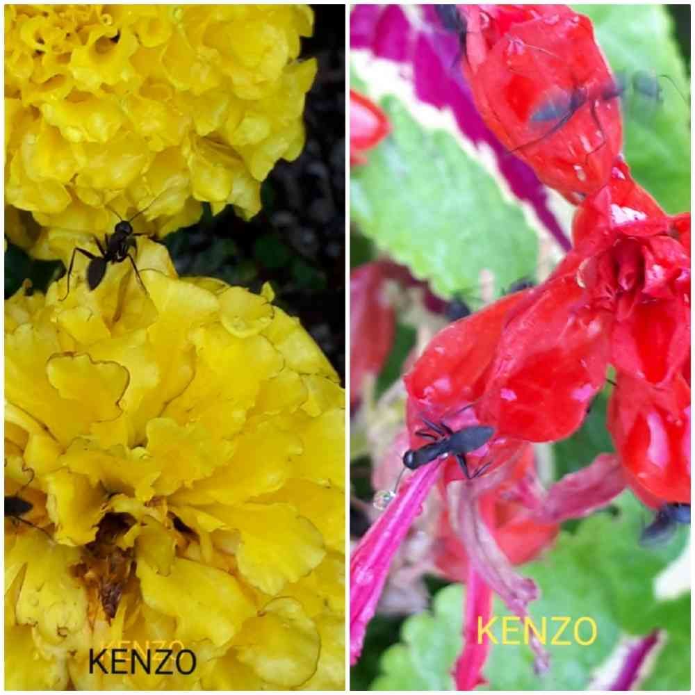 こんな光景が撮れました…☺……そうです😃蟻さんでーす👍マリーゴールドとサルビアの花の周りを、…☺忙がしそうにしていまーす…🎵あぁ😅……😵散水ありがとう😆💕✨