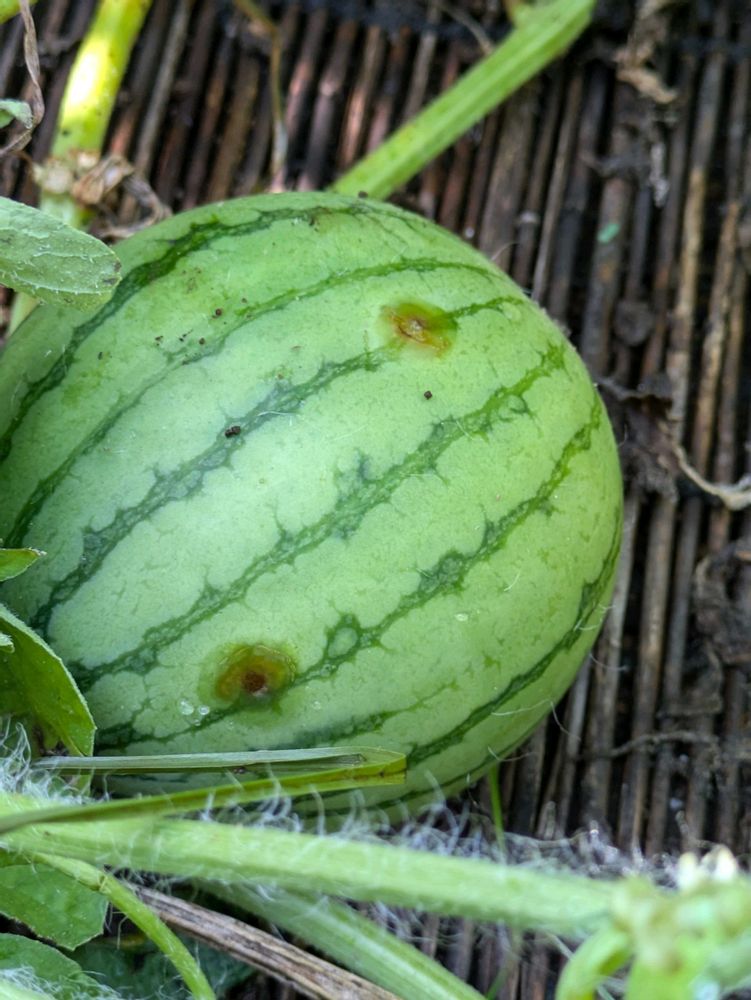 小さいスイカは既に虫食い❓傷み❓あるけど私に食べられる日の為に頑張れー