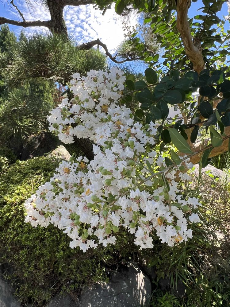 白い百日紅の木の花と、白い雲が素敵でした