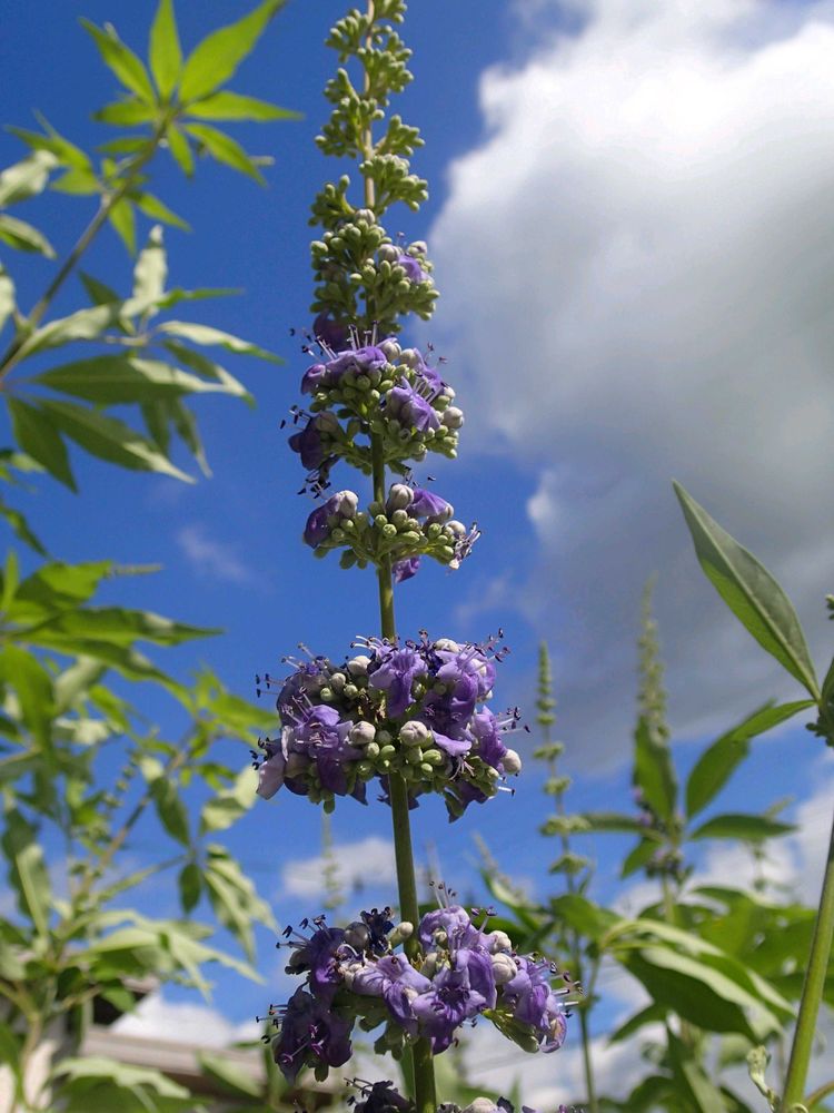セイヨウニンジンボクの今年二度目の花が咲き出した。初夏に一杯花を咲かせ、その後に実を剪定撤去したところ、蕾を伸ばして咲き出しました。🪻