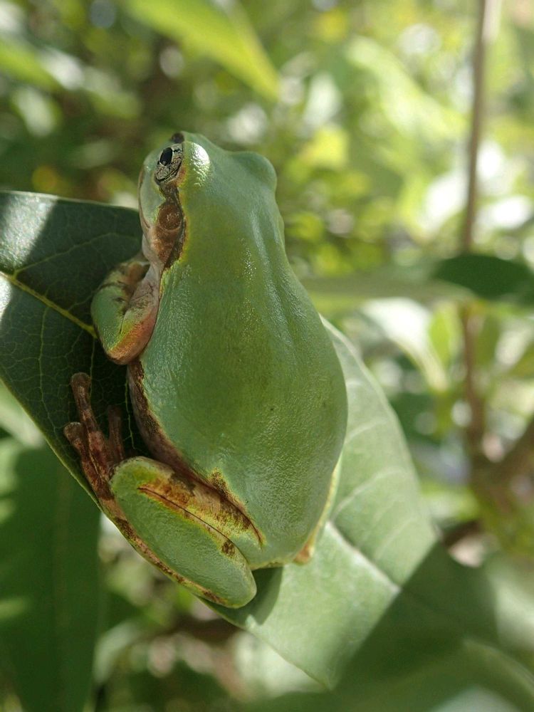 撮影していると葉の陰に久しぶりの雨に喜んだアマガエルがいます。やっとの雨に嬉しそう。🤗🐶✌️