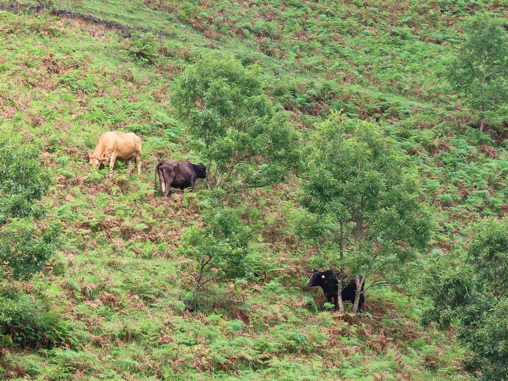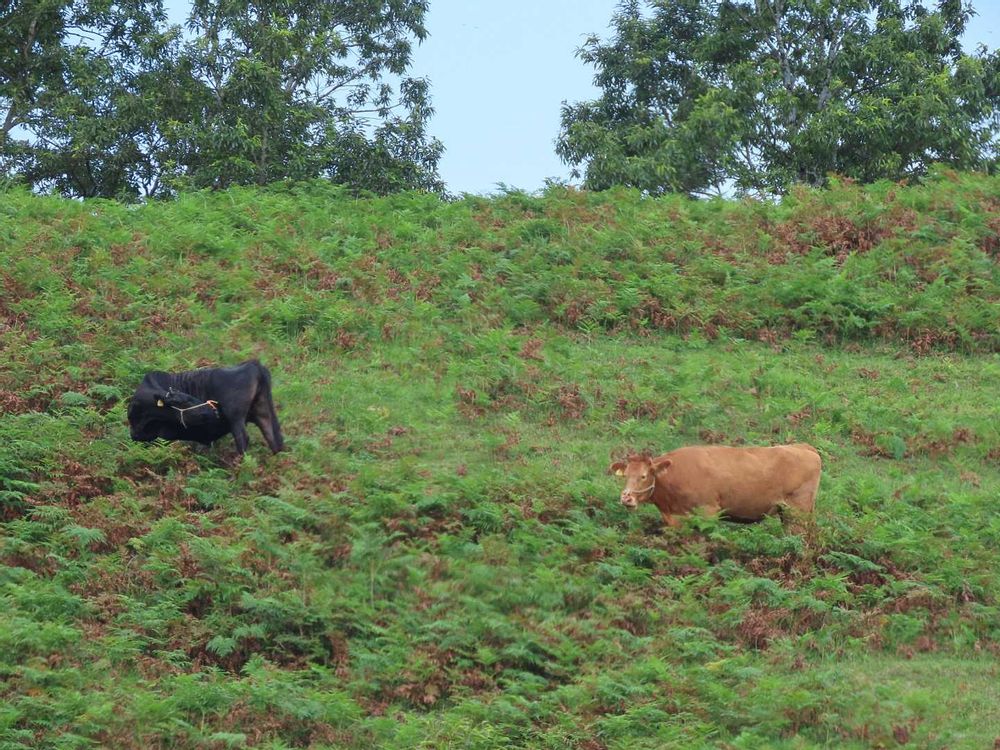 放牧地での牛道は、ちょうど牛の身体の幅くらいで 傾斜地では等高線にそってできています!
