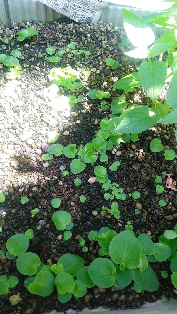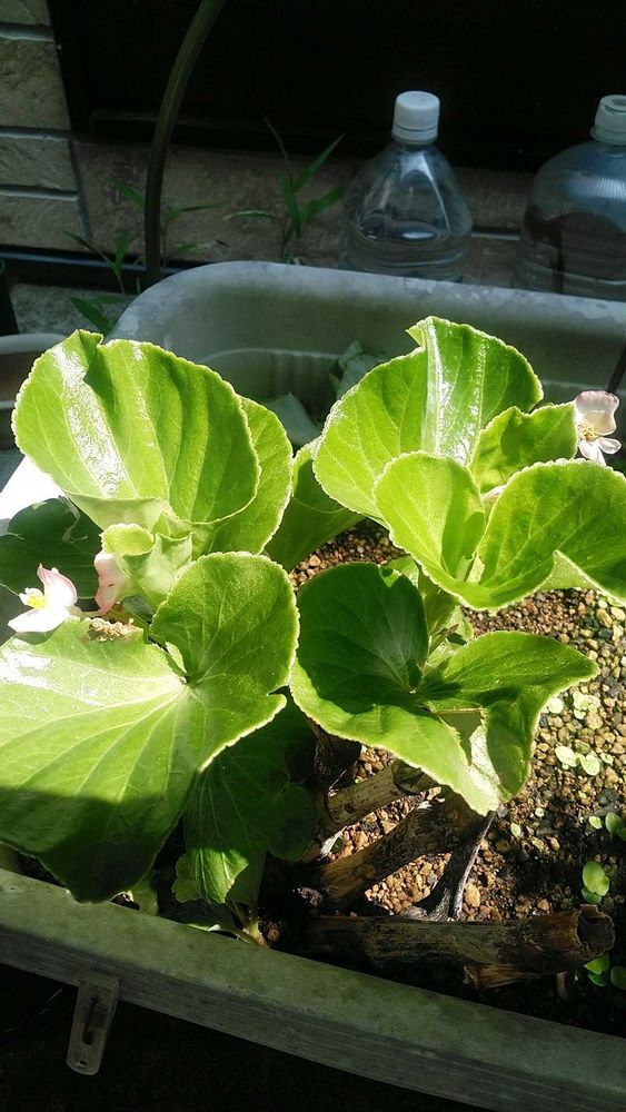 折れたベゴニアをプランターに差しておいたら、育って株の回りにたくさんの実生苗が生えてきていました。