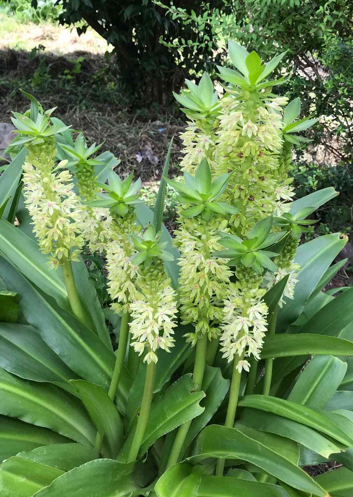 この暑さの中、我が家の白いパイナップルリリーが咲いてます◡̈⃝︎⋆︎*