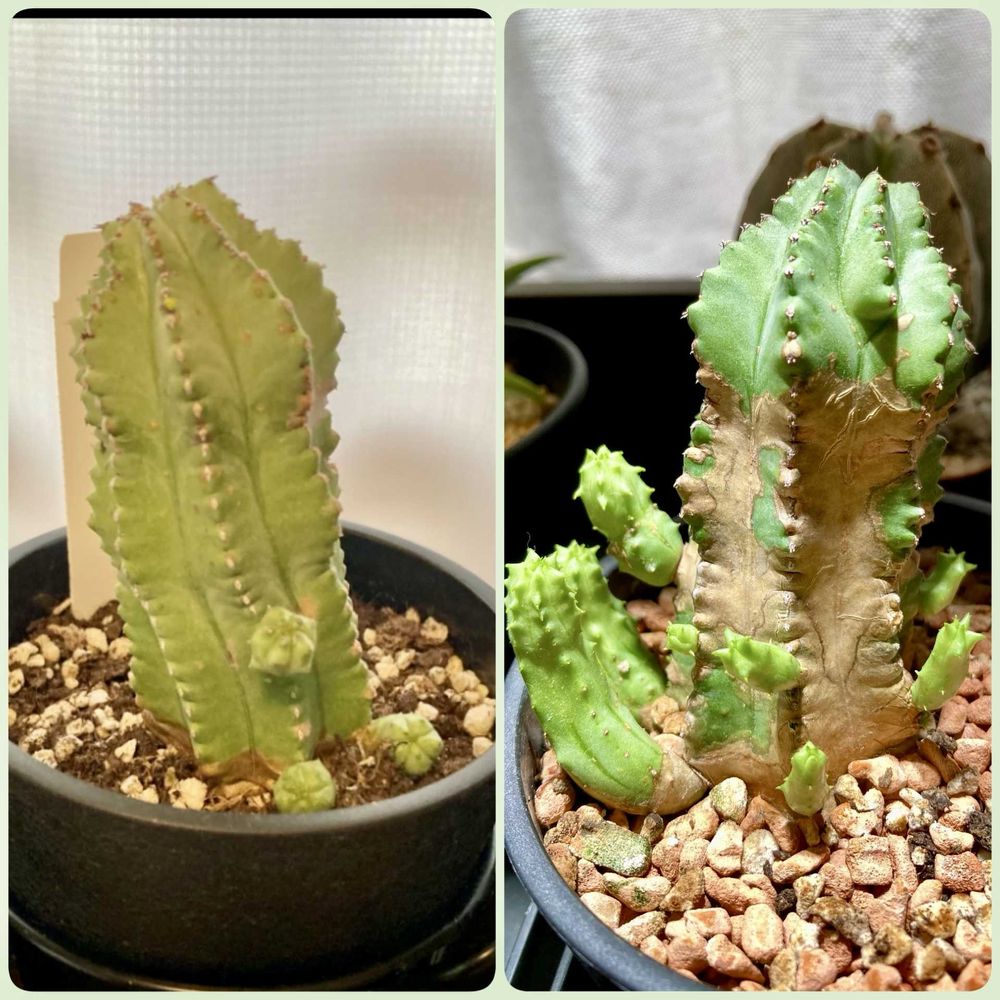 お迎え時と現在の姿③ユーフォルビア フルティコーサ 株元が木質化し子株が倍増😊
